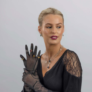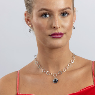 All the collections are intended to showcase unusual pearls and precious stones in distinctive settings, using highly polished or oxidised silver, 22ct gold foil, or coloured titanium. Featuring grey, faceted multicoloured peacock, yellow gold south pacific, and white pearls as well as precious stones of Citrine and Amethysts.